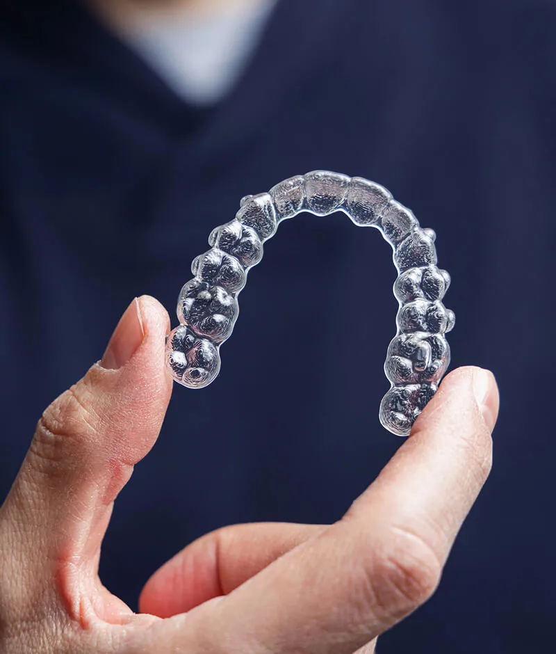 Clear aligners are custom-made, transparent trays designed to gradually shift your teeth into place. Each set of aligners is worn for about two weeks before switching to the next in the series, guiding your smile step by step toward ideal alignment.
